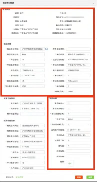 按步骤填写就业协议书内容,填写完成后,等待院校进行审核。