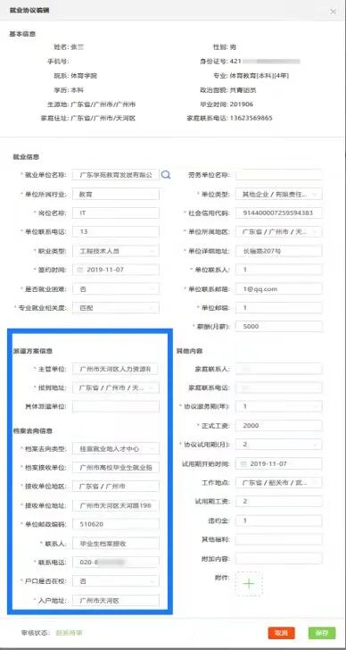 2.填写内容:依照人事接收函内容填写