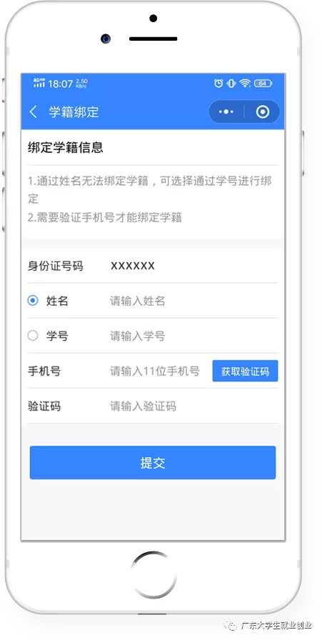 如果尚未绑定学籍(省内)或者绑定身份(省外)的同学,可以先行绑定身份信息,港澳台的同学也可以进行身份信息填报。